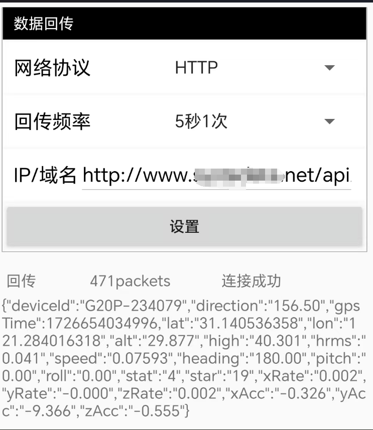 测试数据:{“deviceId”:”G20P-234079″,”direction”:”67.20″,”gpsTime”:1726650947998,”lat”:”31.140536733″,”lon”:”121.284014928″,”alt”:”29.085″,”high”:”39.509″,”hrms”:”2.034″,”speed”:”0.14260″,”heading”:”180.00″,”pitch”:”0.00″,”roll”:”0.00″,”stat”:”5″,”star”:”15″,”xRate”:”0.004″,”yRate”:”-0.001″,”zRate”:”-0.001″,”xAcc”:”-0.306″,”yAcc”:”-9.366″,”zAcc”:”-0.575″}