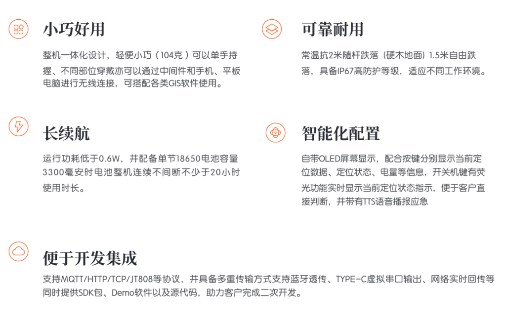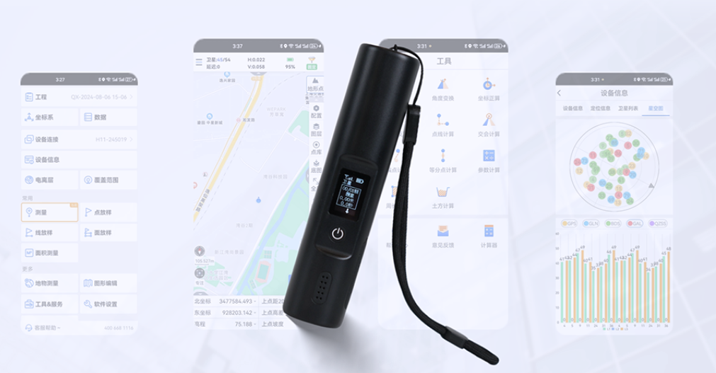 北斗星探是一款自研便携式高精度GNSS接收机,涵盖客户在不同领域数据采集的需求。为应对不同场景并实现高精度定位能力,终端搭载了GNSS高精度模组,并支持三星七频、全星全频,适用于如施工放样、电力勘测、铁路、GIS信息采 集、林业调查、国土调查以及多行业巡检业务的场景。